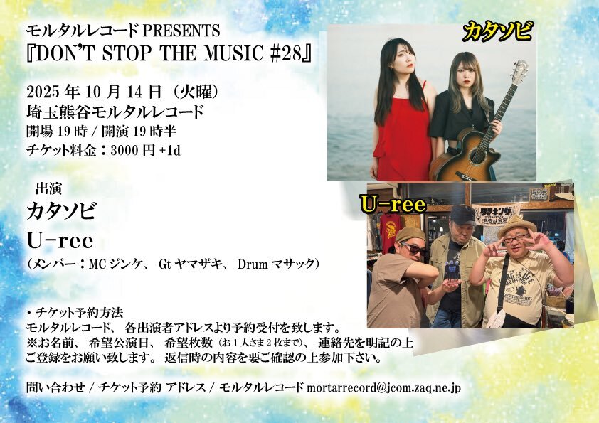 ・10月14日(火)モルタルレコードPRESENTS『DON'T STOP THE MUSIC #28』埼玉熊谷モルタルレコード(埼玉熊谷)