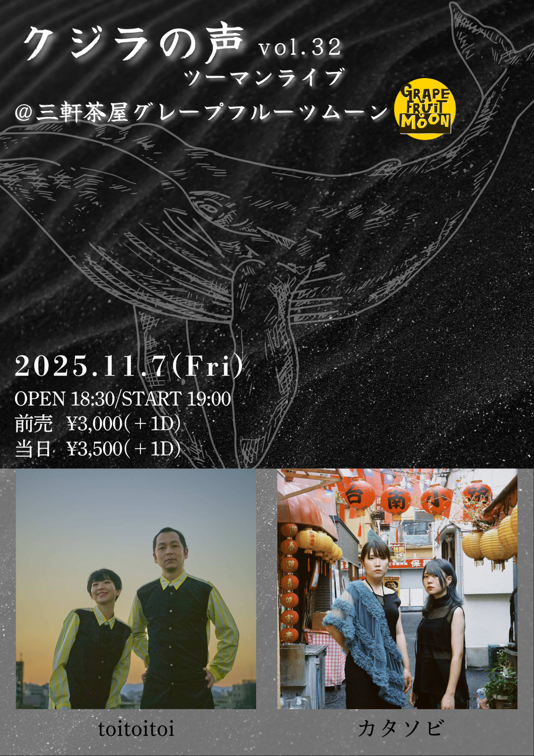 ・11月7日(金) [クジラの声 vol.33] toitoitoi×カタソビ 2マンin Grape Fruit Moon(東京三軒茶屋)
