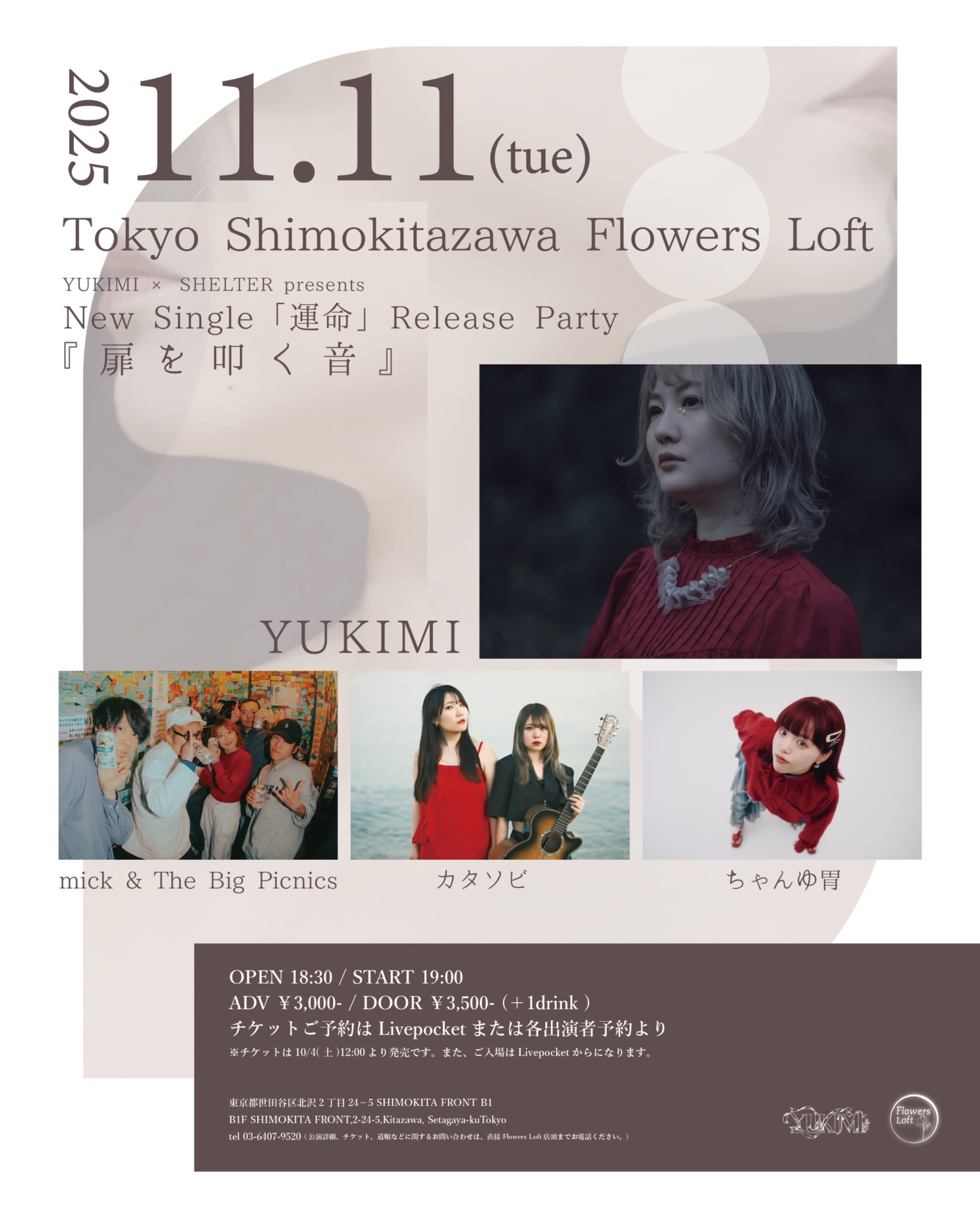 11月11日(火)YUKIMI × SHELTER presents New Single 「運命」Release Party『扉を叩く音』 in Flowers Loft(東京下北沢)
