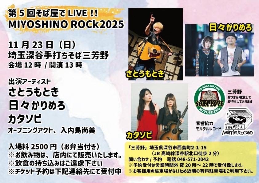 ・11月23日(日)「第5回そば屋でLIVE!! MIYOSHINO ROCK2025」埼玉深谷手打ちそば三芳野(埼玉深谷)