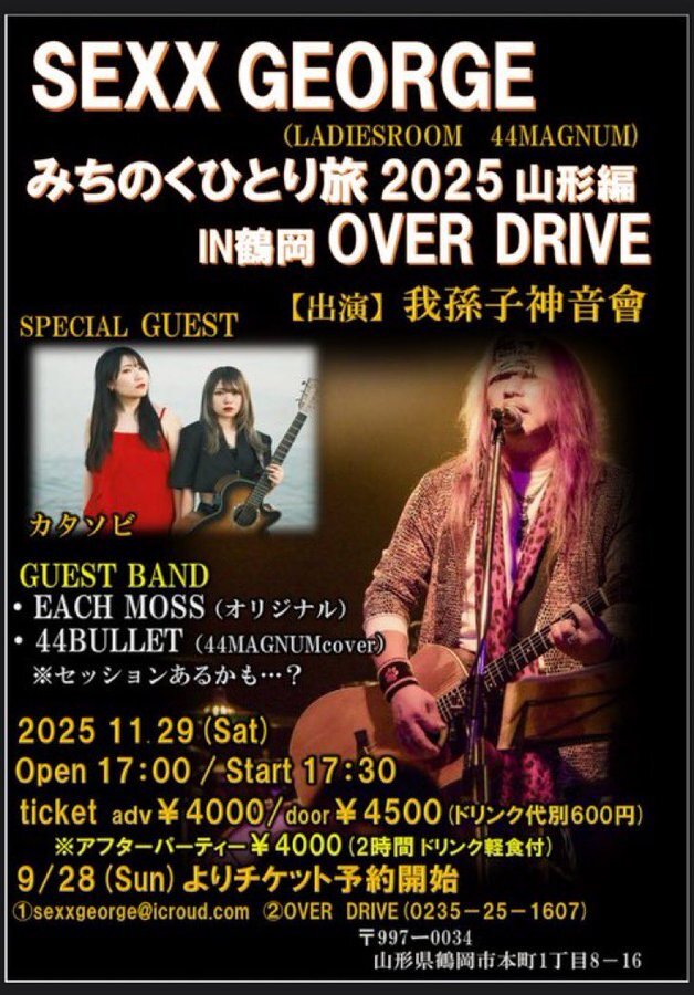 ・11月29日(土) SEXX GEORGE「みちのくひとり旅2025 山形編」in OVER DRIVE(山形鶴岡)